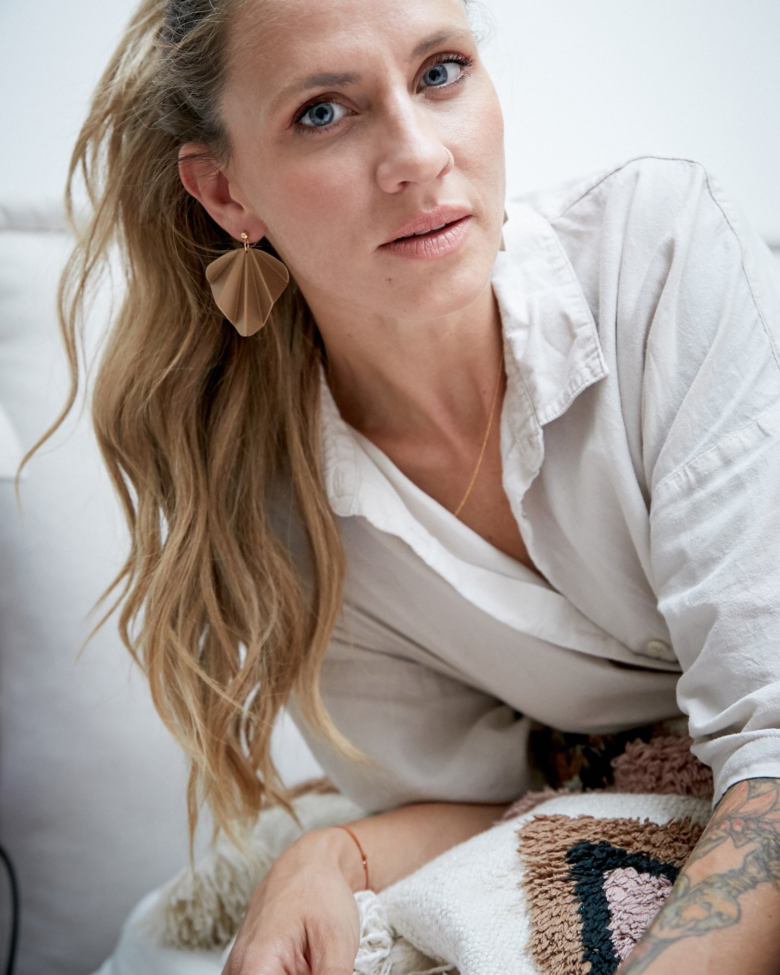 Dieser Ohrring ist nachhaltig, federleicht und zeitlos im Design. Ein perfekter Hingucker für jedes Outfit.